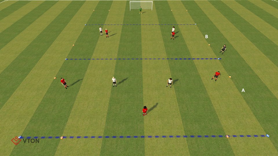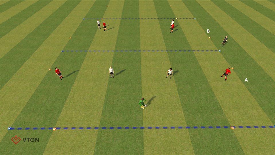 - Lukt het B om de pass te onderscheppen dan is A1 het nieuwe team verdedigers.